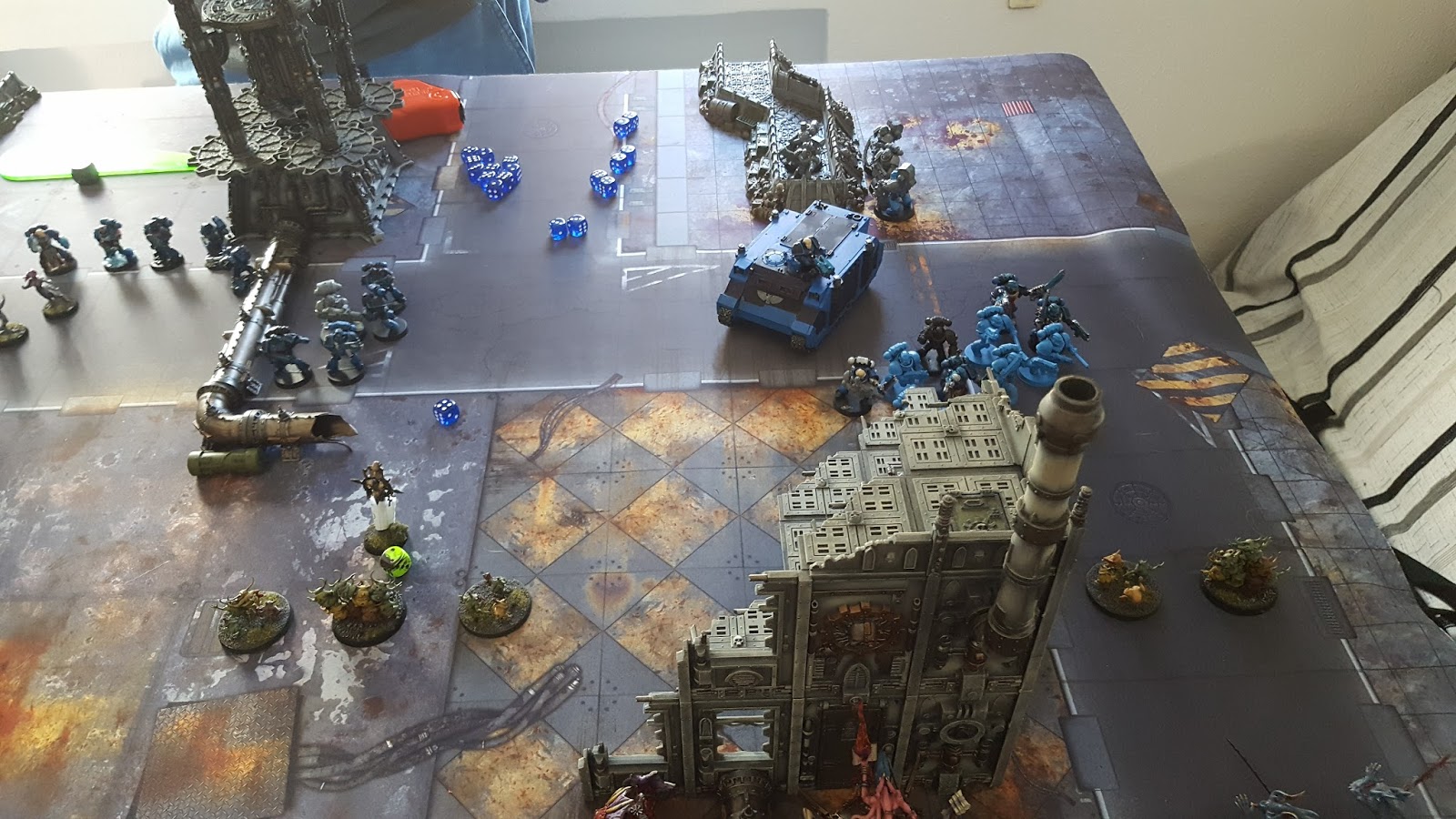 Tras esto la partida fue un toma y daca en la que destaco su Dreagnought Venerable, el cual acabo con las Bestias de Nurgle y mi SdG a cambio de su propia existencia, aunque los MVP de la partida, en mi opinion, fueron esos héroes anónimos, los Nurgletes, molestaron e incordiaron toda la partida, dando coberturas, asaltos con combates eternos, sacando en dos ocasiones resultados de doble 1 en la Inestabilidad Demoniaca, en fin, un coñazo para mi rival toda la partida.